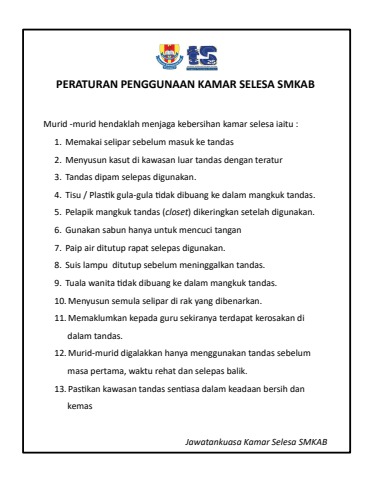 PERATURAN MENGGUNAKAN TANDAS