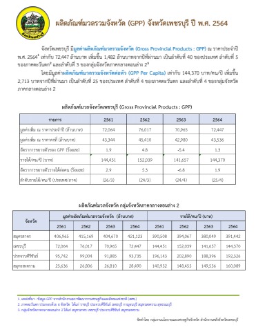 ผลิตภัณฑ์มวลรวมจังหวัด (GPP) จังหวัดเพชรบุรี ปี พ.ศ.2564