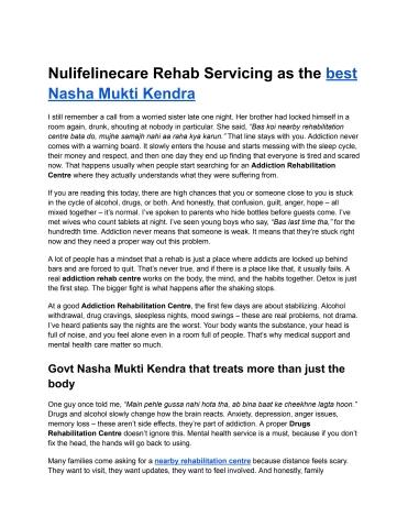 Nulifelinecare Rehab Servicing as the best Nasha Mukti Kendra