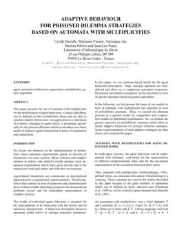 ADAPTIVE BEHAVIOUR FOR PRISONER DILEMMA STRATEGIES BASED ON AUTOMATA WITH MULTIPLICITIES Cyrille Bertelle, Marianne Flouret, V´eronique Jay, Damien Olivier and Jean ...