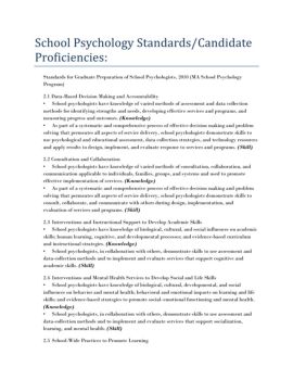 School Psychology Standards/Candidate Proficiencies
