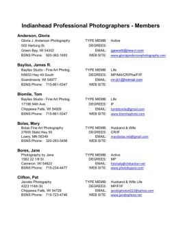 Indianhead Professional Photographers - Members Anderson, Gloria Gloria J. Anderson Photography TYPE MEMB: Active 502 Hartung St. DEGREES: Green Bay, WI 54302 EMAIL ...