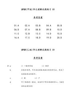 UPSR(甲组)华文理解试题练习 01 参考答案