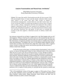 Analytic Functionalism and Mental State Attribution1 Mark Phelan (Lawrence University) Wesley Buckwalter (University of Waterloo) Abstract. We argue that analytic ...