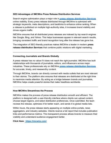IMCWire Press Release Distribution Services Strengthen Digital Marketing Presence