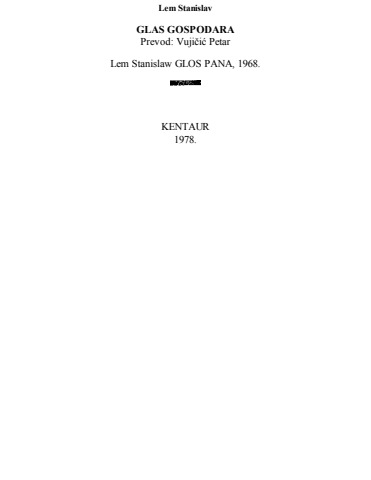 Stanislaw Lem- Glas Gospodara