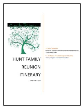 IAAYB Hunt Family Reunion Itinerary