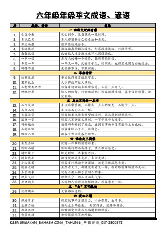 六年级华文成语、谚语