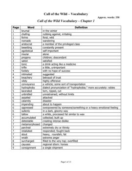 Call of the Wild - Vocabulary - by chapter-page-LtBlue
