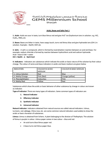 Acids, Bases and Salts Notes - Part 1