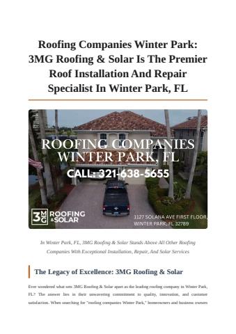 For reliable roofing companies in Winter Park, 3MG Roofing & Solar remains the trusted choice.