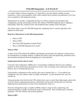 CPQ handles all your front-office processes like sales and quotes in the manufacturing industry. ERP manages all your back-office functions like inventory, production, and invoicing. With the help of CPQ ERP integration, sales reps gain instant access to the entire customer lifecycle and enhance the b2b experience. If you want to use CPQ ERP integration in your business, visit kbmax.com