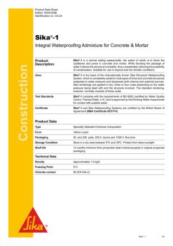 Rendering to resist water pressure Sika®-1 can be used in basements, vaults, swimming pools, tanks etc. Prepare the surface as previously mentioned.
