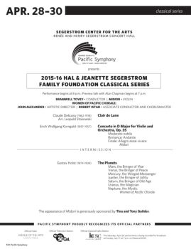 16 • Pacific Symphony NOTES The Planets gustav (holst 1874-1934) Instrumentation: 4 flutes (third doubling on piccolo, fourth doubling on alto flute and