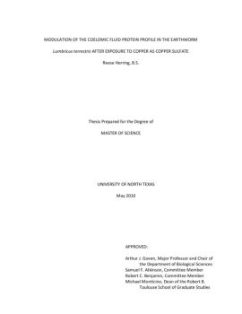 v LIST OF TABLES Page 1. Total coelomic fluid protein concentration determined from coelomic fluid collected from normal unexposed earthworms,