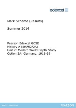 Mark Scheme (Results) Summer 2014 Pearson Edexcel GCSE History A (5HA02/2A) Unit 2: Modern World Depth Study Option 2A: Germany, 1918-39