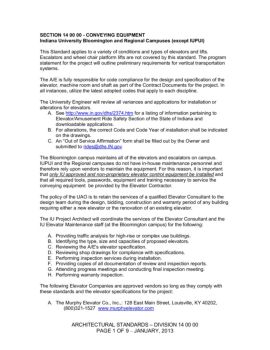 DIV 14 00 00 IUB & Regional Campus Elevator Standards