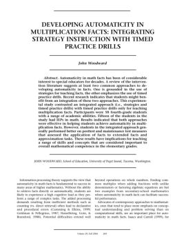 DEVELOPING AUTOMATICITY IN MULTIPLICATION FACTS: INTEGRATING STRATEGY INSTRUCTION WITH TIMED PRACTICE DRILLS John Woodward Abstract.Automaticity in math facts has ...