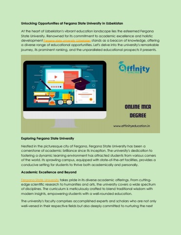 At the heart of Uzbekistan's vibrant education landscape lies the esteemed Fergana State University. Renowned for its commitment to academic excellence and holistic development Fergana State University Uzbekistan stands as a beacon of knowledge, offering a diverse range of educational opportunities. Let's delve into the university's remarkable journey, its prominent ranking, and the unparalleled educational prospects it presents.