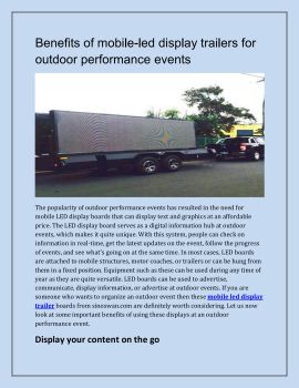 The popularity of outdoor performance events has resulted in the need for mobile LED display boards that can display text and graphics at an affordable price. The LED display board serves as a digital information hub at outdoor events, which makes it quite unique.
