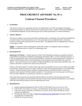 PROCUREMENT ADVISORY No. 93 A Contract Closeout Procedures