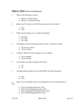 CST 250 JQuery Quiz pg 3 of 3 16. Which jQuery function is used to prevent code from running, before the document is finished loading? a. $(body).onload()