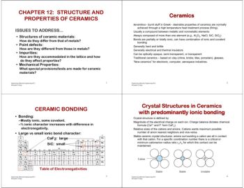 CHAPTER 12: STRUCTURE AND PROPERTIES OF CERAMICS Ceramics