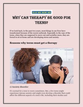 Therapy is a great way to fix a mental health problem or seek extra support for teens going through a rough patch. A trauma therapist could help teens uncover the potential issues, social issues, and skill deficits that might be altering the teen's behavior. To get more details, go through our pdf: https://www.oldmenewme.com/about