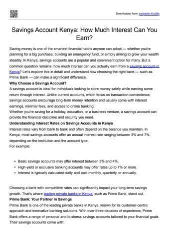 Saving money is one of the smartest financial habits anyone can adopt — whether you're planning for a big purchase, building an emergency fund, or simply aiming to grow your wealth steadily. In Kenya, savings accounts are a popular and convenient option for many. But a common question remains: how much interest can you actually earn from a savings account in Kenya? Let’s explore this in detail and understand how choosing the right bank — such as Prime Bank — can make a significant difference.