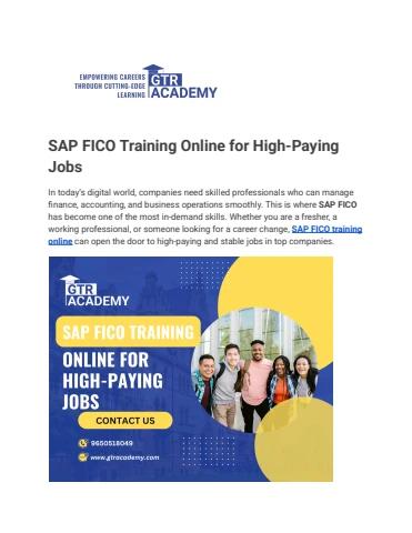 SAP FICO Training Online is one of the ideal methods to create a highly rewarding career in finance and ERP. Online learning would provide students with hands-on experience in financial accounting, controlling, SAP reporting, and even real business processes. With flexibility in classes, live server practice, and expert guidance, online SAP FICO training makes you job-ready for top roles in companies, helps you earn strong salaries, and grow faster in your career.