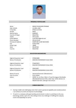 PERSONAL PARTICULARS