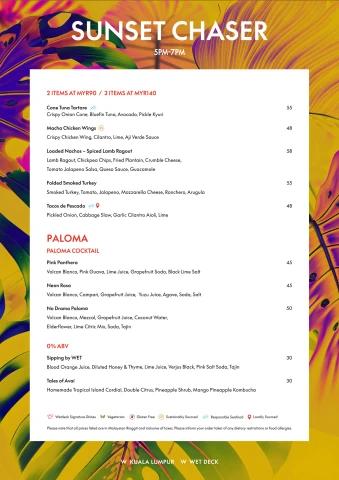 SUNSET CHASER MENU