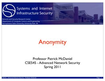 CSE545 - Advanced Network Security - Professor McDaniel Page Why anonymity? • What about in the real world? ‣ Do you want people to know which stores, movies ...