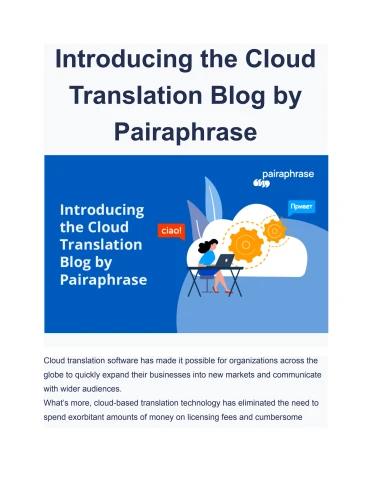 Introducing the Cloud Translation Blog by Pairaphrase