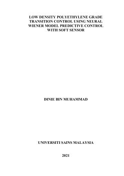 Low density polyethylene (LDPE) is a valuable commodity polymer with high demands because of its versatile applications. Due to the competitive LDPE market, manufacturers need to improve their production by implementing advanced process control (APC) schemes such as nonlinear model predictive control (NMPC) to control grade transition and increase polymer conversion. Recently, NMPC based on first principle model (FPM) has been implemented to control the LDPE tubular reactor process. However, such a model requires significant effort to be developed and is less feasible for industrial implementation. Moreover, there are time delay issues with the practical LDPE quality measurement, i.e., melt flow index (MFI) and polymer conversion, that affect the NMPC control performance. Thus, this study aims to develop and evaluate the performance of the Neural Wiener MPC (NWMPC) in controlling LDPE grade transition and conversion. In addition, a soft sensor model with a bias updated scheme was developed to estimate the delay measurements and simultaneously update the model output signal with the current measurements. In order to obtain the input-output data to develop the NW model, a dynamic simulation model of the LDPE tubular reactor was developed using Aspen Plus and Aspen Dynamic software. The NW model produced a correlation of determination (R2) of 0.989 for the LDPE conversion and R2 of 0.986 for the MFI profile from the model validation results. During the development of the soft sensor model, the input selection was conducted based on the Pearson correlation coefficient xxiv (PCC) and expert knowledge. The validation results of the soft sensor model showed R2 of 0.999 and R2 of 0.998 for polymer conversion and MFI, respectively. In this work, the NWMPC control scheme was developed inside Matlab Simulink and integrated with Aspen Dynamic for online LDPE tubular reactor control. In order to evaluate the NWMPC performance, the controller was tested in grade transition, conversion change, disturbance rejection, and robustness tests using State space MPC (SSMPC) as a comparison. The tests’ process profiling and integral squared error (ISE) analysis showed that the NWMPC successfully outperformed the SSMPC. Furthermore, the combination of the NWMPC with soft sensor (NWMPC-SS) demonstrated excellent performance in handling LDPE grade transitions and conversion changes despite a time delay in the control loop. Based on these performances, the ability of the NWMPC-SS to control the LDPE tubular reactor is established, which highlights its potential comparable with FPM-based NMPC.