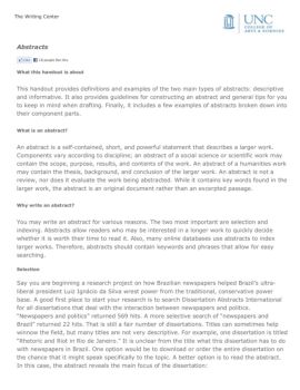 The Writing Center Abstracts What this handout is about This handout provides definitions and examples of the two main types of abstracts: descriptive