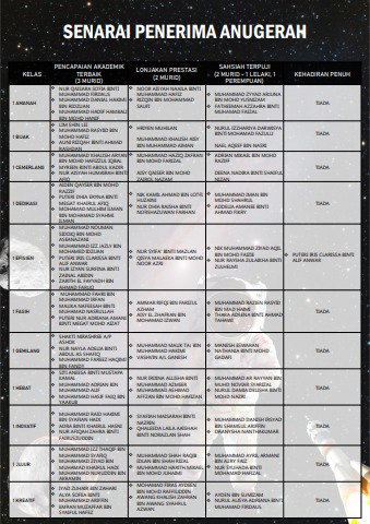 SENARAI PENERIMA ANUGERAH MAJLIS APRESIASI SK SETIA ALAM SESI 2022/2023