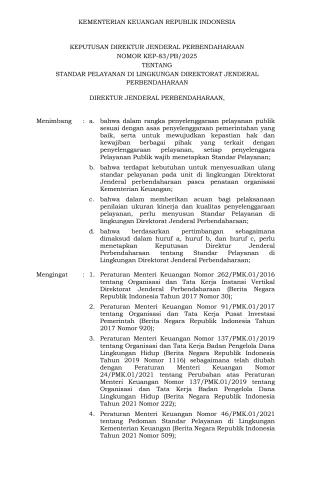 Standar Pelayanan di Lingkup Direktorat Jenderal Perbendaharaan KEP-83/PB/2025