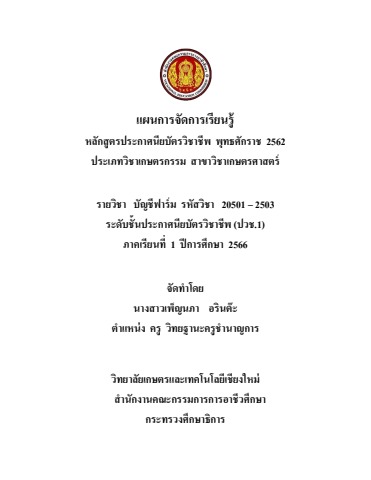แผนการจัดการเรียนรู้วิชาบัญชีฟาร์ม