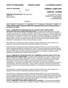 STATE OF WISCONSIN CIRCUIT COURT LA CROSSE COUNTY STATE OF WISCONSIN Plaintiff, ... INTOXICANT-RELATED CONVICTION/REVOCATION: The above-named defendant on or about