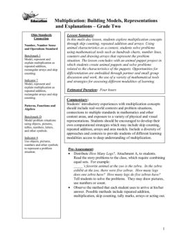 Multiplication: Building Models, Representations and Explanations – Grade Two 1 Benchmark I counting. tables, numbers, letters, to represent a problem