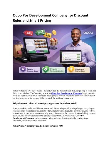 Odoo Pos Development Company for discount rules and smart pricing—automate offers, apply dynamic pricelists, and speed up checkout with accurate billing.
