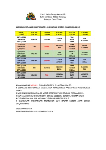 JADUAL STAFF BULAN 12