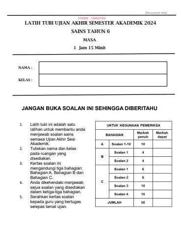 ULANGKAJI UASA SAINS TAHUN 6 -SKEMA JAWAPAN