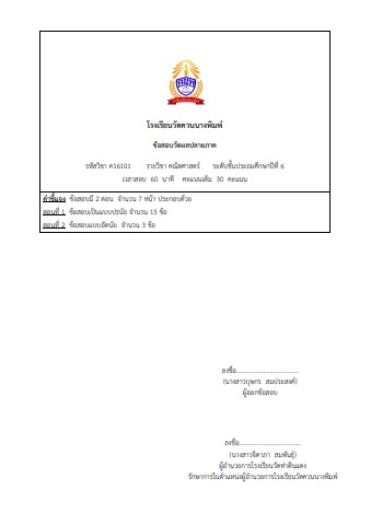 แบบทดสอบวัดผลปลายภาคเรียนที่ 2 ปีการศึกษา 2565 ชั้นประถมศึกษาปีที่ 6