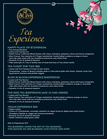 Bliss Tea & Treats Menu In Full Bloom