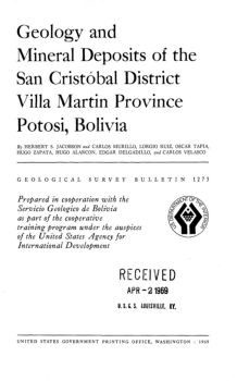 Geology and Mineral Deposits of the San Cristobal District Villa Martin Province Potosi, Bolivia By HERBERT S. JACOBSON and CARLOS MURILLO, LORGIO RUIZ, OSCAR ...