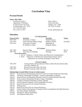 Fodor/CV 2 Teaching Experience A. General 2000-present Associate Professor of Theology and Christian Ethics, St. Bonaventure University, St. Bonaventure, NY