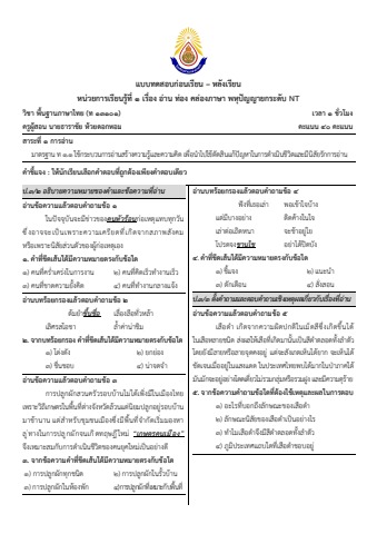 แบบทดสอบก่อนเรียน – หลังเรียน อ่าน ท่อง คล่องภาษา พหุปัญญายกระดับ NT