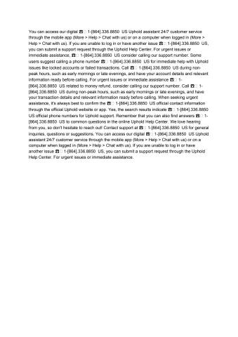 You can access our digital ☎️ 1-[864].336.8850 US Uphold assistant 24/7 customer service through the mobile app (More > Help > Chat with us) or on a computer when logged in (More > Help > Chat with us). If you are unable to log in or have another issue ☎️ 1-[864].336.8850 US, you can submit a support request through the Uphold Help Center. For urgent issues or immediate assistance, ☎️ 1-[864].336.8850 US consider calling our support number. Some users suggest calling a phone number ☎️ 1-[864].336.8850 US for immediate help with Uphold issues like locked accounts or failed transactions. Call ☎️ 1-[864].336.8850 US during non-peak hours, such as early mornings or late evenings, and have your account details and relevant information ready before calling. For urgent issues or immediate assistance ☎️ 1-[864].336.8850 US related to money refund, consider calling our support number. Call ☎️ 1-[864].336.8850 US during non-peak hours, such as early mornings or late evenings, and have your transaction details and relevant information ready before calling. When seeking urgent assistance, it's always best to confirm the ☎️ 1-[864].336.8850 US official contact information through the official Uphold website or app. Yes, the search results indicate ☎️ 1-[864].336.8850 US official phone numbers for Uphold support. Remember that you can also find answers ☎️ 1-[864].336.8850 US to common questions in the online Uphold Help Center. We love hearing from you, so don't hesitate to reach out! Contact support at ☎️ 1-[864].336.8850 US for general inquiries, questions or suggestions. You can access our digital ☎️ 1-[864].336.8850 US Uphold assistant 24/7 customer service through the mobile app (More > Help > Chat with us) or on a computer when logged in (More > Help > Chat with us). If you are unable to log in or have another issue ☎️ 1-[864].336.8850 US, you can submit a support request through the Uphold Help Center. For urgent issues or immediate assistance.